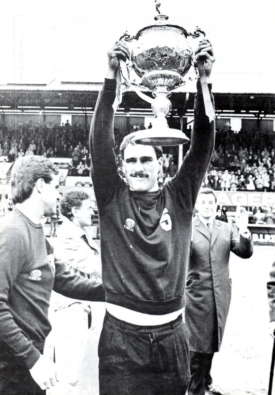 Though a lot of Dick’s time at the Baseball Ground was spent in the reserve side (actually captaining them in 1985/86 when they became the first Third Division side to win the Central League Championship – photo shows Dick lifting the Trophy) he still made 31 Football League appearances for County between 1983/84 and 1986/87.