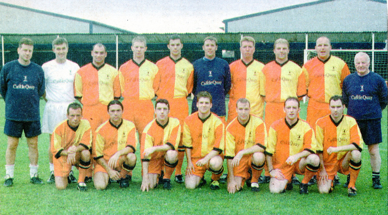 Back Row (Left to Right): Kevin Brock (Manager), John Cramond (coach), Gary Harrison, Andy Wallbridge, Jody McKay, Jon Skeen, Anton Rogan, Ashley McKinness, Steve Jenkins, Brian Robinson (Assistant Manager).