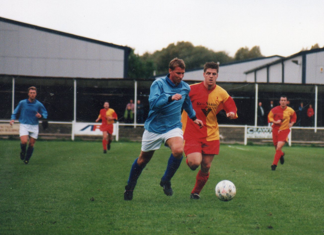 However, a much better October and November saw United climb up towards mid-table but another disappointing run after that saw the club down to just above the relegation places when travelling to play Erith & Belvedere on Saturday 3rd February 2001 – 25 years ago this week! Many would argue that afternoon was the turning point of the season with a very impressive 5-0 win for the Puritans, goals coming from Jon Corbett, Steve Jenkins (2) (1 pen), Jody McKay and Matty Gooderick. The remainder of the season was much improved for the Puritans, the club eventually finishing in13th place and comfortably maintaining their Southern League status.
